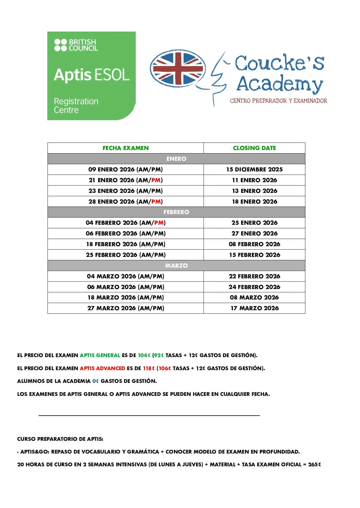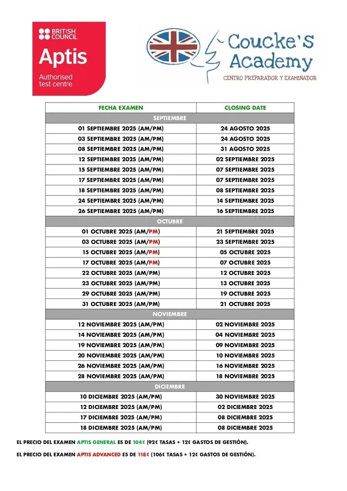 Coucke’s English Academy es Authorised Test Centre de Aptis ESOL.