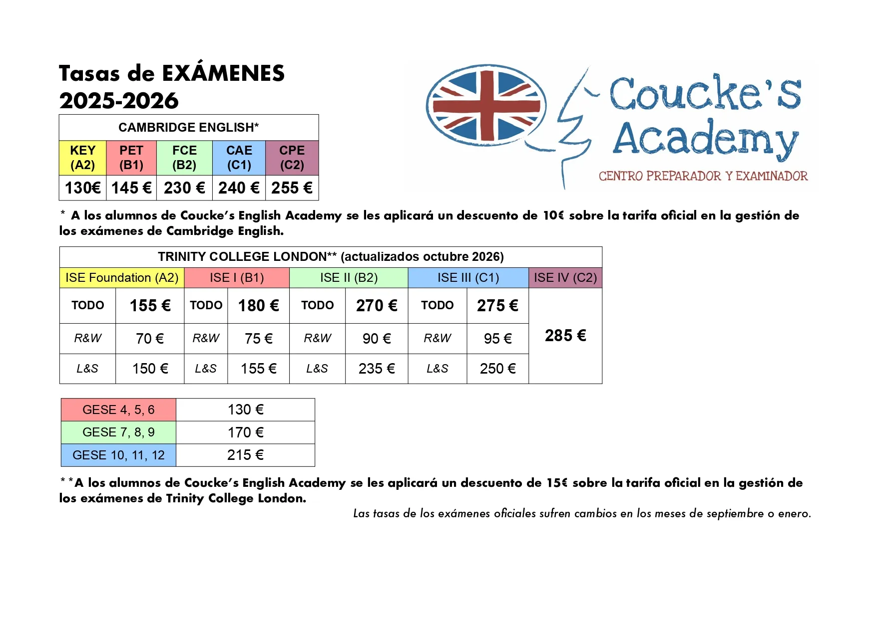 Coucke’s English Academy es Centro Examinador Oficial de los exámenes de Trinity.